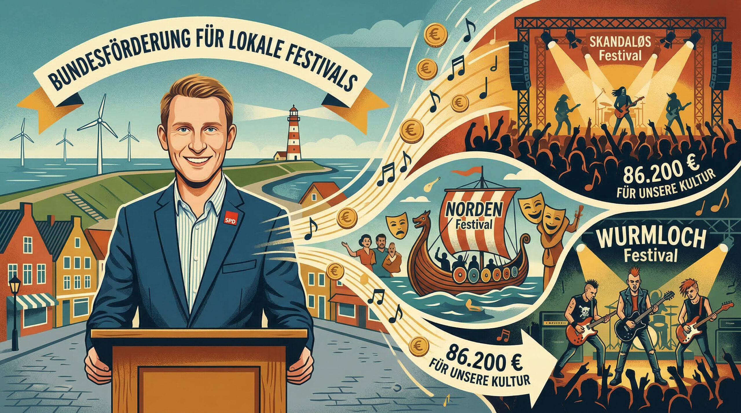 Unser Bundestagsabgeordneter Truels Reichardt (SPD) bringt exzellente Neuigkeiten für die Kulturszene in Nordfriesland und Dithmarschen-Nord. Aus dem Festivalförderfonds des Bundes fließen in der dritten Förderrunde insgesamt 86.200 Euro in drei herausragende lokale Festivals.